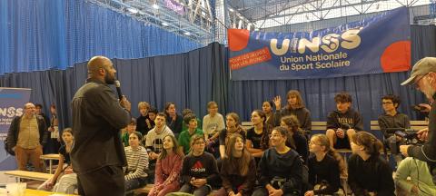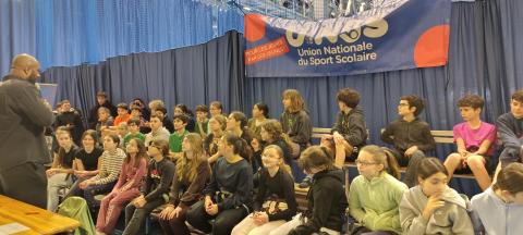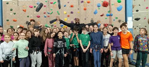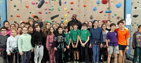 Mercredi 28 janvier, Teddy Riner est venu rencontrer les élèves des associations sportives du district de Valence (dont notre A.S. du collège Gérard Gaud) lors d’une rencontre d’escalade à Valence.